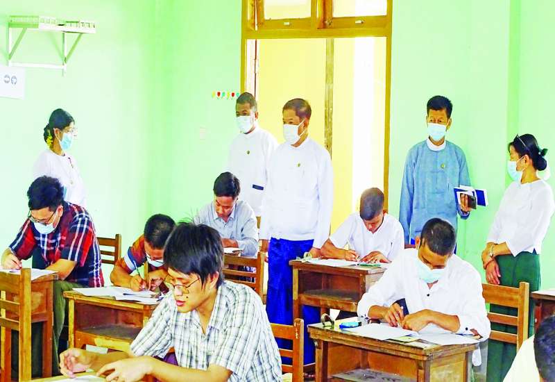 ပြည်ထောင်စုရာထူးဝန်အဖွဲ့၏ ကြော်ငြာစာအမှတ် (၂/၂၀၂၂)ပါ ဝန်ကြီးဌာနနှင့် အဖွဲ့အစည်း (၁၄)ခုရှိ ပြန်တမ်းဝင်အရာရှိအဆင့် စတင်ခန့် လစ်လပ်ရာထူး ၁၁၁၆ နေရာ ရွေးချယ်ပေးရန် ရေးဖြေစာမေးပွဲကို ကိုဗစ်-၁၉ ကာကွယ်ထိန်းချုပ်ရေးဆိုင်ရာ စည်းကမ်းသတ်မှတ်ချက်နှင့်အညီ နေပြည်တော်၊ ရန်ကုန်၊ မန္တလေး၊ မကွေးနှင့် မော်လမြိုင် မြို့များရှိ စာစစ်ဌာနငါးခု၌ ယနေ့နှင့် မေ ၈ ရက်တို့တွင် တစ်ပြိုင်တည်း ကျင်းပလျက်ရှိသည်။