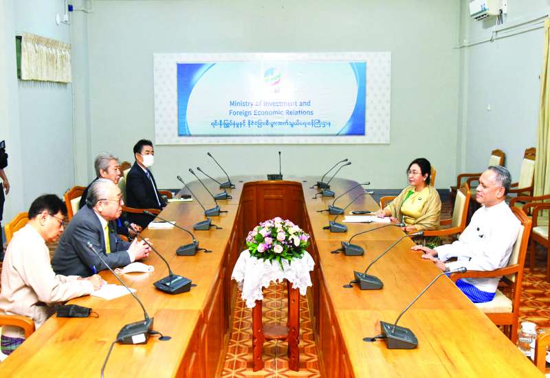 ရင်းနှီးမြှုပ်နှံမှုနှင့် နိုင်ငံခြားစီးပွားဆက်သွယ်ရေးဝန်ကြီးဌာန ပြည်ထောင်စုဝန်ကြီး ဦးအောင်နိုင်ဦးသည် ဂျပန်-မြန်မာအသင်းဥက္ကဋ္ဌ မစ္စတာ ဝါတာနာဘေး ဟိဒဲအို ဦးဆောင်သည့် ကိုယ်စားလှယ်အဖွဲ့အား ယနေ့ နံနက်ပိုင်းတွင် နေပြည်တော်၌ လက်ခံတွေ့ဆုံသည်။