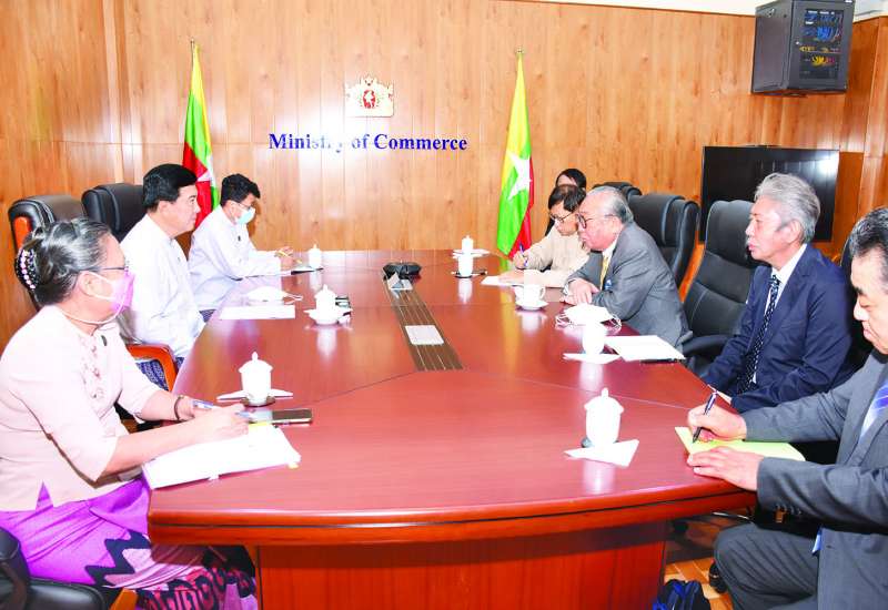 စီးပွားရေးနှင့် ကူးသန်းရောင်းဝယ်ရေးဝန်ကြီးဌာန ပြည်ထောင်စုဝန်ကြီး ဒေါက်တာပွင့်ဆန်းသည် Japan Myanmar Association ၏ Chairman, Mr. Watanabe Hideo ဦးဆောင်သည့် ကိုယ်စားလှယ်အဖွဲ့ကို ယနေ့မွန်းလွဲပိုင်းက စီးပွားရေးနှင့် ကူးသန်းရောင်းဝယ်ရေးဝန်ကြီးဌာန ဧည့်ခန်းမ၌ လက်ခံတွေ့ဆုံသည်။