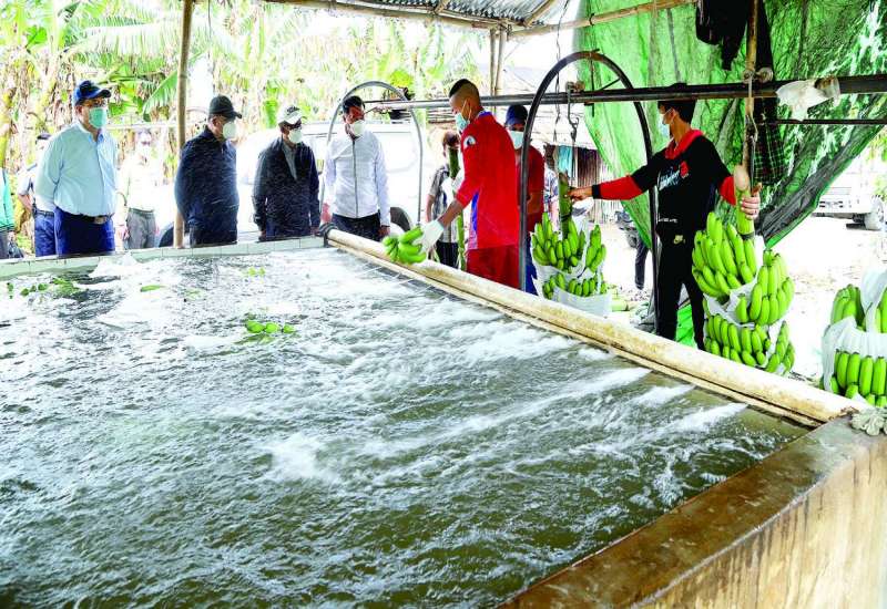 စိုက်ပျိုးရေး၊ မွေးမြူရေးနှင့်ဆည်မြောင်းဝန်ကြီးဌာန ပြည်ထောင်စုဝန်ကြီး ဦးတင်ထွဋ်ဦး၊ ကချင်ပြည်နယ်ဝန်ကြီးချုပ် ဦးခက်ထိန်နန်နှင့် ပြည်နယ်အစိုးရအဖွဲ့ဝင် ဝန်ကြီးများ၊ ဌာနဆိုင်ရာတာဝန်ရှိသူများသည် မေ ၂ ရက် နံနက်ပိုင်းက ဝိုင်းမော်မြို့နယ် စမ်းခါးကျေးရွာရှိ လုံယောင်းကုမ္ပဏီက စိုက်ပျိုးထားရှိသည့် တစ်သျှူးငှက်ပျောစိုက်ခင်းများနှင့် ငှက်ပျောခိုင်များ ခုတ်သိမ်း ထုပ်ပိုးနေမှုတို့ကို ကြည့်ရှုအားပေးကြသည်။