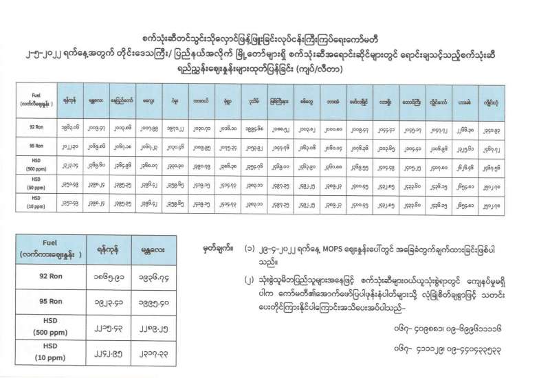 မှတ်ချက်။ (၁) MOPS ဈေးနှုန်းပေါ်တွင် အခြေခံတွက်ချက်ထားခြင်းဖြစ်ပါသည်။