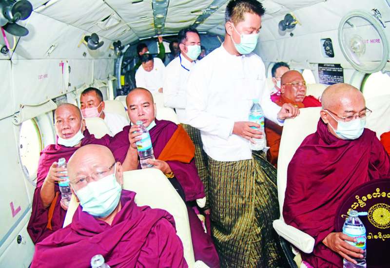 နိုင်ငံတော်စီမံအုပ်ချုပ်ရေးကောင်စီအဖွဲ့ဝင် ဒေါ်အေးနုစိန်သည် ပြည်နယ်မိခင်နှင့်ကလေး စောင့်ရှောက်မှုကြီးကြပ်ရေးအဖွဲ့ဥက္ကဋ္ဌ၊ အဖွဲ့ဝင်များနှင့်အတူ ယနေ့ မွန်းလွဲပိုင်းက စစ်တွေမြို့ပေါ်ရှိ သီလရှင်ကျောင်းတိုက်များသို့ သွားရောက်ပြီး ဆွမ်းဆန်တော်များ ဆက်ကပ်လှူဒါန်းသည်။