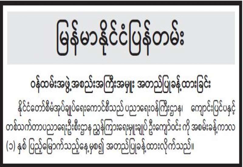 မြန်မာနိုင်ငံပြန်တမ်း ဝန်ထမ်းအဖွဲ့အစည်းအကြီးအမှူး အတည်ပြုခန့်ထားခြင်း