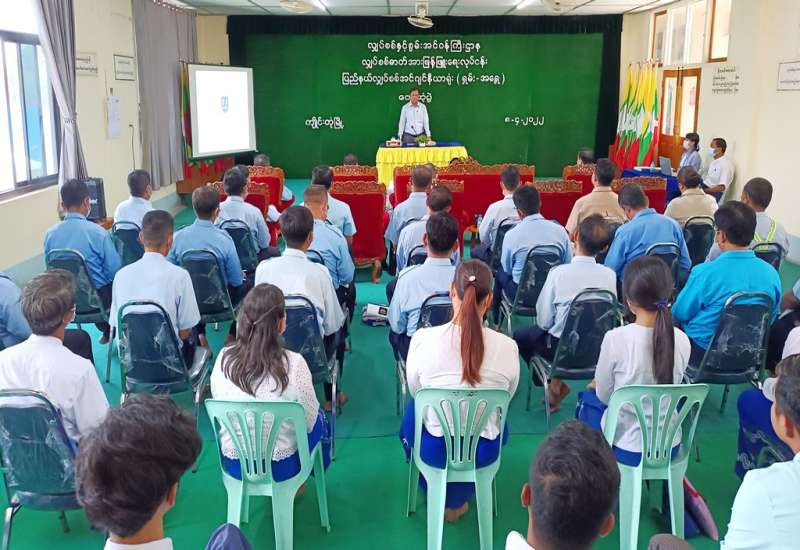 လျှပ်စစ်နှင့်စွမ်းအင်ဝန်ကြီးဌာန ပြည်ထောင်စုဝန်ကြီး ဦးအောင်သန်းဦးသည် ယနေ့နံနက်ပိုင်းတွင် ရှမ်းပြည်နယ် (အရှေ့ပိုင်း)ကျိုင်းတုံမြို့ရှိ လျှပ်စစ်ဓာတ်အားဖြန့်ဖြူးရေးလုပ်ငန်း၊ ပြည်နယ်လျှပ်စစ် အင်ဂျင်နီယာရုံး၌ ရှမ်းပြည်နယ်(အရှေ့ပိုင်း)အတွင်းရှိ ပြည်နယ်/ ခရိုင်/ မြို့နယ်လျှပ်စစ်အင်ဂျင်နီယာများ၊ မြို့နယ်လျှပ်စစ်မှူးများ၊ ဝန်ထမ်းများနှင့်တွေ့ဆုံ၍ ရှမ်းပြည်နယ် (အရှေ့ပိုင်း)အတွင်း လျှပ်စစ် ဓာတ်အားတိုးမြှင့်ဖြန့်ဖြူးပေးနိုင်ရေး၊ ဓာတ်အားပြတ်တောက်မှု လျော့နည်းကျဆင်းရေးနှင့် ဓာတ်အားစနစ်တည်ငြိမ်တိုးတက်ကောင်းမွန်စေရေးတို့အတွက် အစည်းအဝေးကျင်းပသည်။