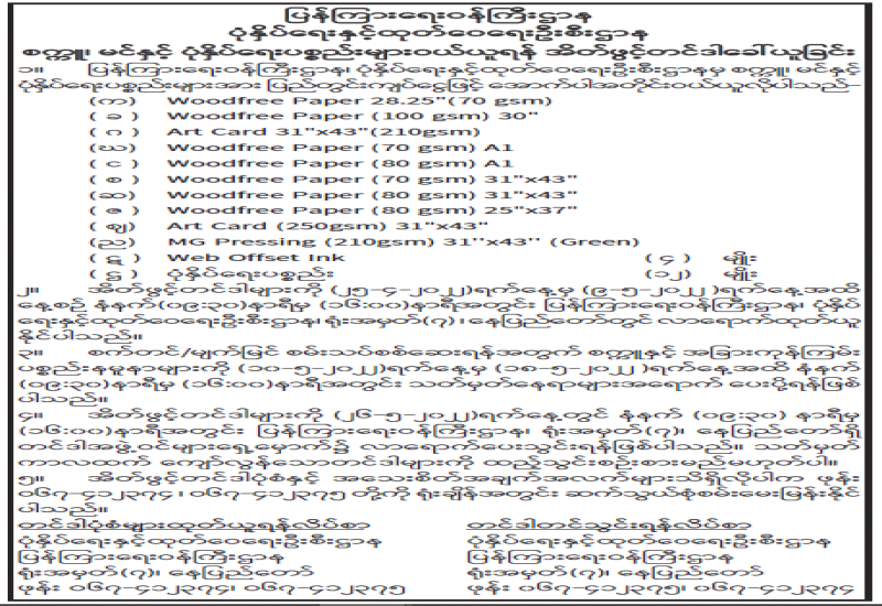 မြန်မာနှစ်သစ်ကူးရုံးပိတ်ရက်များအတွင်း ပြန်ကြားရေးဝန်ကြီးဌာန၊ သတင်းနှင့်စာနယ်ဇင်းလုပ်ငန်း၏ နေ့စဉ်ထုတ်သတင်းစာများကို အလှည့်ကျထုတ်ဝေမည်ဖြစ်ပါသည်။