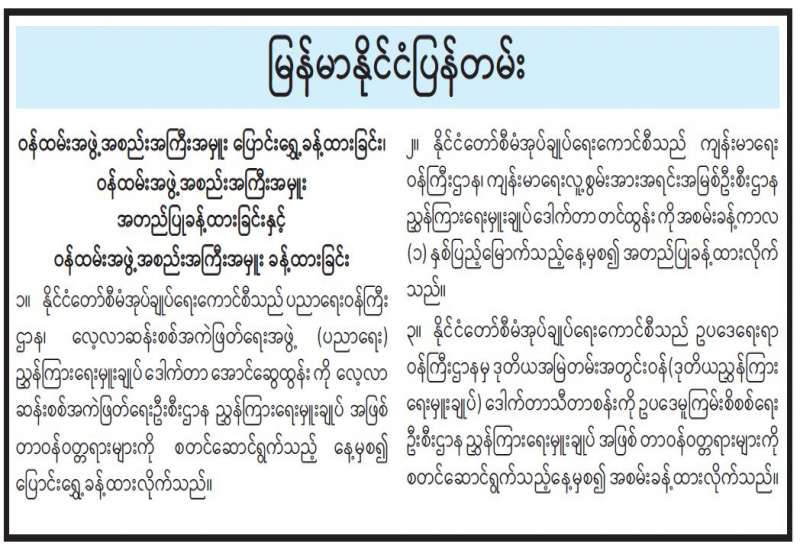 “ဝန်ထမ်းနောင်ရေး ဗဟိုရန်ပုံငွေ အကောင်အထည်ဖော်ရေးကော်မတီ”၏ (၂/၂၀၂၂) ကြိမ်မြောက် အစည်းအဝေးကို ယနေ့နံနက် ၁၀ နာရီက စီမံကိန်းနှင့် ဘဏ္ဍာရေးဝန်ကြီးဌာန အစည်းအဝေးခန်းမ၌ ကျင်းပသည်။