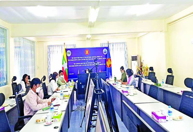 အာဆီယံအဖွဲ့ဝင်နိုင်ငံများအကြား အစားအစာ ဘေးအန္တရာယ် ကင်းရှင်းစေရေးဆိုင်ရာ သတင်းအချက်အလက်များဖလှယ်ခြင်း၊ ညွှန်ကြားချက်များ ထုတ်ပြန်ခြင်းနှင့် စပ်လျဉ်းသည့် အာဆီယံအစားအစာနှင့် တိရစ္ဆာန်အစာ ဘေးကင်းလုံခြုံရေးဆိုင်ရာ လျင်မြန်စွာ လှုံ့ဆော်မှုစနစ် ( ASEAN Rapid Alert System for Food and Feed-ARASFF) ဆိုင်ရာ လက်ရှိဆောင်ရွက်နေသည့် ကိစ္စရပ်များ၊ ကြုံတွေ့ရသည့် အခက်အခဲများ၊ ရှေ့ဆက်လက် ဆောင်ရွက်မည့် ကိစ္စရပ်များအား ဆွေးနွေးနိုင်ရန် ရည်ရွယ်၍ ASEAN အဖွဲ့ဝင်နိုင်ငံများမှ အိမ်ရှင်နိုင်ငံအဖြစ် အက္ခရာစဉ်အတိုင်း နှစ်စဉ်အလှည့်ကျ လက်ခံကျင်းပ ဆောင်ရွက်လျက်ရှိရာ အာဆီယံအစားအစာနှင့် တိရစ္ဆာန်အစာ ဘေးကင်းလုံခြုံရေးဆိုင်ရာ လျင်မြန်စွာလှုံ့ဆော်မှုစနစ် (၉)ကြိမ်မြောက် National Contact Points နှင့် (၇)ကြိမ်မြောက် Steering Committee အစည်းအဝေးများကို ဧပြီ ၄ ရက်နှင့် ၅ ရက်တို့တွင် မြန်မာနိုင်ငံမှ အိမ်ရှင်နိုင်ငံအဖြစ် အွန်လိုင်းမှတစ်ဆင့် ကျင်းပခဲ့သည်။