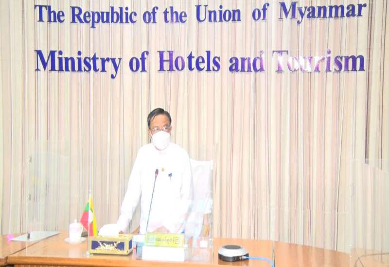ဟိုတယ်နှင့်ခရီးသွားလာရေးဝန်ကြီးဌာန၊ ပြည်ထောင်စုဝန်ကြီး ဒေါက်တာဌေးအောင်သည် ယနေ့မွန်းလွဲပိုင်းတွင် ဟိုတယ်၊ မိုတယ်၊ တည်းခိုရိပ်သာများတွင် ခရီးသွားဧည့်သည်များ စနစ်တကျ တည်းခိုနေထိုင်စေရေး နေပြည်တော်ကောင်စီ၊ တိုင်းဒေသကြီး/ပြည်နယ် ရုံးခွဲတာဝန်ခံများနှင့် ဗီဒီယိုကွန်ဖရင့်စနစ်ဖြင့် ဝန်ကြီးဌာန၊ နီလာခန်းမ၌ တွေ့ဆုံသည်။