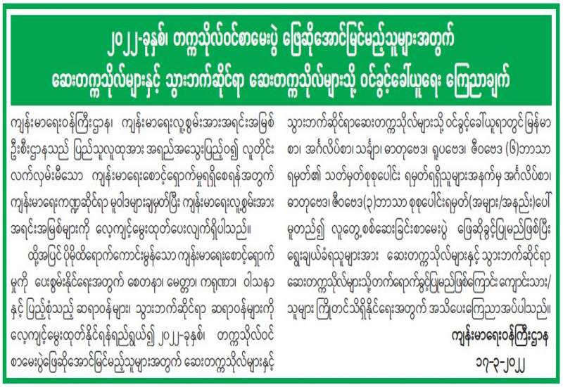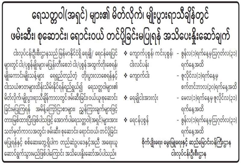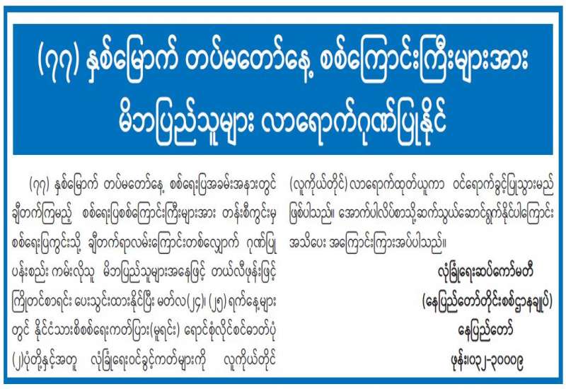 ပြည်ထဲရေးဝန်ကြီးဌာန တပ်ဖွဲ့ဝင်/ ဝန်ထမ်း အရာထမ်း၊ အမှုထမ်းမိသားစုများက မြို့နယ်အသီးသီးရှိ ဘုန်းတော်ကြီးကျောင်းများသို့ ဆွမ်းဆန်တော်များ ဆက်ကပ်လှူဒါန်းခြင်းကို ဆောင်ရွက်လျက်ရှိသည်။