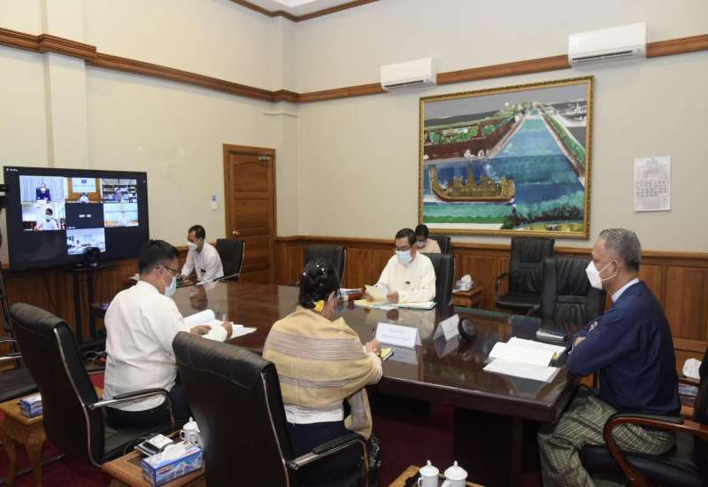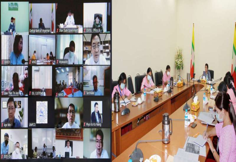 ကိုဗစ်-၁၉ ကြောင့် ဖြစ်ပေါ်လာနိုင်သည့် စီးပွားရေးသက်ရောက်မှုများအပေါ် ကုစားရေး လုပ်ငန်းကော်မတီ၏ အစည်းအဝေး (၂/၂၀၂၂) ကို ယနေ့နံနက်ပိုင်းတွင် ရင်းနှီးမြှုပ်နှံမှုနှင့် နိုင်ငံခြား စီးပွားဆက်သွယ်ရေးဝန်ကြီးဌာန၌ Video Conferencing ဖြင့် ကျင်းပသည်။