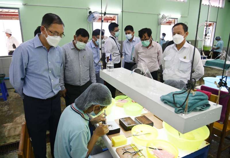 သယံဇာတနှင့် သဘာဝပတ်ဝန်းကျင်ထိန်းသိမ်းရေးဝန်ကြီးဌာန၊ ပြည်ထောင်စုဝန်ကြီး ဦးခင်မောင်ရီသည် ယနေ့နံနက်ပိုင်းတွင် တနင်္သာရီတိုင်းဒေသကြီး၊ ကျွန်းစုမြို့နယ်ရှိ ဒုံးပုလဲအော် ကျွန်းပုလဲ မွေးမြူရေးစခန်းသို့ရောက်ရှိရာ ရှင်းလင်းဆောင်တွင် တာဝန်ရှိသူများက လုပ်ငန်းဆောင်ရွက်မှု အခြေအနေများကို ရှင်းလင်းတင်ပြသည်။
