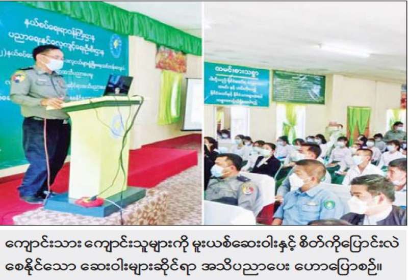 နယ်စပ်ရေးရာဝန်ကြီးဌာန ပညာရေးနှင့်လေ့ကျင့်ရေးဦးစီးဌာန ကချင်ပြည်နယ်ဦးစီးမှူးရုံး မြစ်ကြီးနားနှင့် နယ်စပ်ဒေသတိုင်းရင်းသား လူငယ်များ ဖွံ့ဖြိုးရေးသင်တန်းကျောင်း၊ မြစ်ကြီးနား(၁၊ ၂) ရှိ ဝန်ထမ်း များ၊ ကျောင်းသား ကျောင်းသူများကို မူးယစ်ဆေးဝါးနှင့် စိတ်ကိုပြောင်းလဲစေနိုင်သော ဆေးဝါးများဆိုင်ရာ အသိပညာပေးမှု၊ လူကုန်ကူးမှုဆိုင်ရာ အသိပညာပေးမှုနှင့် ဥပဒေရေးရာ အသိပညာပေးမှု သတင်း အမှား၊ အမှန် ခွဲခြားသုံးသပ်နိုင်ရေး ဟောပြောပွဲကို ယနေ့နံနက်ပိုင်းတွင် သင်တန်းကျောင်းခန်းမ၌ ကျင်းပသည်။