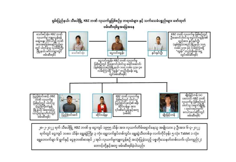 ရှမ်းပြည်နယ်(မြောက်ပိုင်း)၊ ကျောက်မဲမြို့နှင့် သီပေါမြို့နယ်တို့ရှိ ကမ္ဘောဇဘဏ်ခွဲ(၂)ခုအား သေနတ်ပြခြိမ်းခြောက်၍ လုယက်မှုကျူးလွန်ခဲ့သူ တရားခံများအား သက်သေခံပစ္စည်းများနှင့်အတူ ဖော်ထုတ်ဖမ်းဆီးရမိခဲ့ကြောင်း သိရသည်။