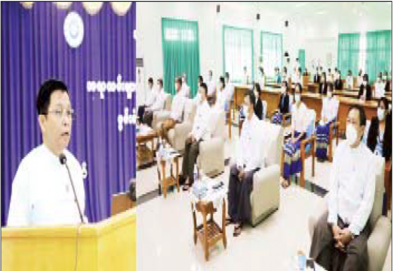 တိုင်းရင်းသားလူမျိုးများရေးရာဝန်ကြီးဌာန၊ ဝန်ထမ်းစွမ်းဆောင်ရည်မြှင့်တင်ရေး (အမှုထမ်း) သင်တန်း အမှတ်စဉ်(၁/၂၀၂၂) ဖွင့်ပွဲအခမ်းအနားကို ယနေ့ မွန်းလွဲ၁ နာရီတွင် တိုင်းရင်းသား လူမျိုးများရေးရာဝန်ကြီးဌာန၊ အစည်းအဝေးခန်းမ၌ ကိုဗစ်-၁၉ တားဆီး ကာကွယ်ရေး၊ ကျန်းမာရေးဆိုင်ရာ ညွှန်ကြားချက်များနှင့်အညီ ကျင်းပရာ ပြည်ထောင်စုဝန်ကြီး ဦးစောထွန်းအောင်မြင့်၊ ဒုတိယဝန်ကြီး ဦးဇော်အေးမောင်၊ အမြဲတမ်းအတွင်းဝန်၊ ညွှန်ကြား ရေးမှူးချုပ်များ၊ တာဝန်ရှိသူများ၊ သင်တန်းနည်းပြများနှင့် သင်တန်းသား၊ သင်တန်းသူများ တက်ရောက်ခဲ့ကြသည်။