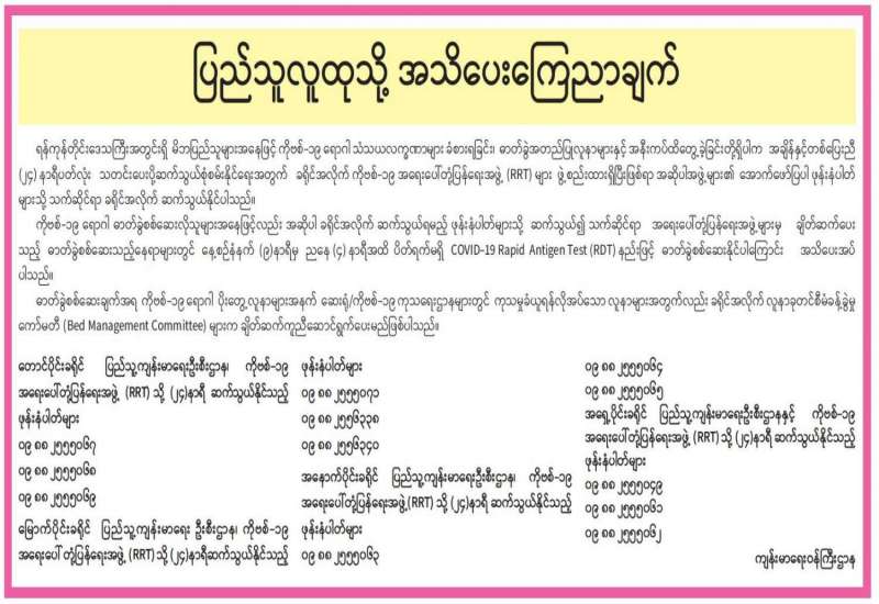 ကိုဗစ်-၁၉ ရောဂါ ကူးစက်မှုအနိမ့်ဆုံးအနေဖြင့် နေ့စဉ် ၁ ရာခိုင်နှုန်း ဝန်းကျင်ခန့်သာ ရှိတော့သည့် အခြေအနေမှ ရောဂါကူးစက်မှု ပြန်တက်လာခဲ့ရာ ရက်သတ္တတစ်ပတ်ခန့် ကာလအတွင်း နေ့စဉ်ကူးစက်မှု ၇ ရာခိုင်နှုန်း ပတ်လည်သို့ ပြန်လည်ရောက်ရှိနေသည်။ ရာသီဥတုအေးမြနေခြင်းကို အကြောင်းပြု၍ ရာသီတုပ်ကွေး ပျံ့နှံ့နေမှုနှင့်လည်း တိုက်ဆိုင်နေရာ မိမိတို့၏ပတ်ဝန်းကျင်များတွင် ဖျားနာနေသူများကို တွေ့မြင်နေရပြီး ကိုဗစ်-၁၉ လော၊ ရာသီတုပ် ကွေးလောဟူ၍ အရောရော အထွေးထွေး ဖြစ်ကြရသည်။ မည်သို့ပင်ဖြစ်စေ ကိုဗစ်-၁၉ ကာကွယ်ရေးစည်းမျဉ်း စည်းကမ်းများကို ကျင့်သုံးခြင်းအားဖြင့် ကူးစက်ရောဂါ နှစ်မျိုးစလုံးကို ကာကွယ်နိုင်ကြောင်း သိရှိကြပြီး ကူးစက်မခံရမီ ကြိုတင်ကာကွယ် ကြစေလိုသည်။