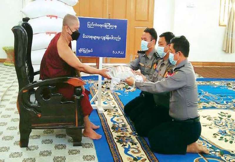 ပြည်ထဲရေးဝန်ကြီးဌာန တပ်ဖွဲ့ ဝင်/ဝန်ထမ်း အရာထမ်း၊ အမှုထမ်းမိသားစုများက မြို့နယ်အသီးသီးရှိ ဘုန်းတော်ကြီးကျောင်းများသို့ ဆွမ်းဆန်တော်များ ဆက်ကပ်လှူဒါန်းလျက်ရှိသည်။