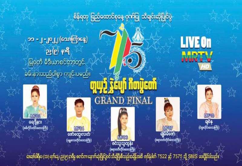 စိန်ရတုပြည်ထောင်စုနေ့ကို ဂုဏ်ပြုသောအားဖြင့် “တူယှဉ်နွှဲပျော် ဂီတပွဲတော်” နောက်ဆုံးအဆင့် သီချင်းဆိုပြိုင်ပွဲကို ဖေဖော်ဝါရီ ၁၁ ရက် (သောကြာနေ့)ညတွင် ရန်ကုန်မြို့ ပြည်သာယာရှိမြဝတီမီဒီယာစင်တာတွင် ကျင်းပမည်ဖြစ်ရာ မြန်မာ့ရုပ်မြင်သံကြားမှ တိုက်ရိုက် Live ရိုက်ကူးထုတ်လွှင့်မည်ဖြစ်သည်။