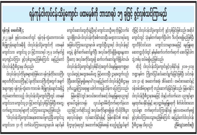 ရန်ကုန်ငါးဖမ်းလုပ်ငန်းသိပ္ပံကျောင်း ပထမနှစ်ကို ဘာသာရပ် ၁၅ ခုဖြင့် ဖွင့်လှစ်သင်ကြားမည်