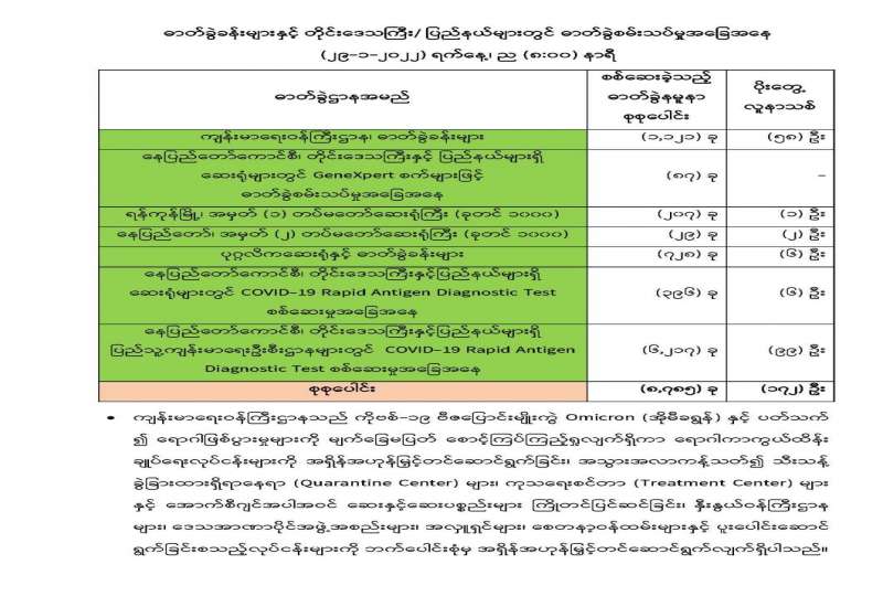 COVID-19 ရောဂါစောင့်ကြပ်ကြည့်ရှုမှုနှင့်ပတ်သက်၍ သတင်းထုတ်ပြန်ခြင်း (၂၉-၁-၂၀၂၂) ရက်နေ့၊ ည (၈:၀၀) နာရီ