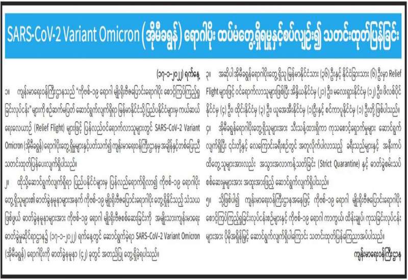 ကမ္ဘာပေါ်တွင် ကိုဗစ်-၁၉ ရောဂါနှင့် မျိုးရိုးဗီဇပြောင်းရောဂါပိုးသစ် ဖြစ်ပွားနေဆဲဖြစ်သည်။ မြန်မာနိုင်ငံတွင် ကိုဗစ်-၁၉ ရောဂါနှင့်ပတ်သက်၍ ကာကွယ် ထိန်းချုပ်၊ ကုသရေးကို တက်ညီလက်ညီကြိုးပမ်းဆောင်ရွက်လျက်ရှိသောကြောင့် ရောဂါဖြစ်ပွားနှုန်း မြင့်တက်လာခြင်း မရှိဘဲ ထိန်းချုပ်နိုင်သည့်အဆင့်တွင် ရှိနေသည်။ မျိုးရိုးဗီဇပြောင်းရောဂါပိုးသစ်နှင့် ပတ်သက်၍လည်း ဂရုတစိုက်အလေးထား စောင့်ကြည့်ဆောင်ရွက်လျက်ရှိသည်။