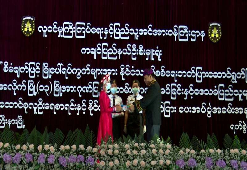 ကချင်ပြည်နယ်အတွင်း ပန်းခင်းစီမံချက်ဖြင့် နိုင်ငံသားစိစစ်ရေးကတ်ပြား ထုတ်ပေးခြင်း လုပ်ငန်းကို မြို့ပေါ်ရပ်ကွက်များ၌ ဆောင်ရွက်ပြီးစီးသည့် မြို့နယ်အလိုက် မြို့(၁၃) မြို့ကို ဂုဏ်ပြု မှတ်တမ်းလွှာ ပေးအပ်ခြင်းနှင့် ဒေသခံပြည်သူများအား အိမ်ထောင်စု လူဦးရေစာရင်းနှင့် နိုင်ငံသားစိစစ်ရေး ကတ်ပြားပေးအပ်ပွဲကို ယနေ့မွန်းလွဲ(၂) နာရီတွင် မြစ်ကြီးနားမြို့၊ မြို့တော်ခန်းမ၌ ကျင်းပသည်။