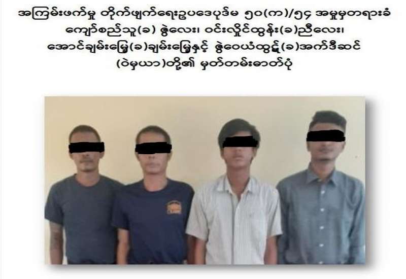 ရန်ကုန်တိုင်းဒေသကြီး၊ မြောက်ဥက္ကလာပမြို့နယ်၌ အောင်ပိုင်သူ(ခ)မိုးညို (ဘ)ဦးသန်းနိုင်သည် ၂၀၂၁ ခုနှစ်၊ ဖေဖော်ဝါရီလမှစ၍ ဆူပူဆန္ဒပြမှုဖြစ်စဉ်များတွင် တတ်ကြွစွာပါဝင်လှုပ်ရှားခြင်း၊ တိုင်းရင်းသားလက်နက်ကိုင် အဖွဲ့နယ်မြေအတွင်း၌ သင်တန်းတက်ရောက်ခြင်းတို့ကြောင့် လည်းကောင်း၊ ထက်ဝေယံ(ခ) နောင်နောင် (ဘ)ဦးဇော်နိုင်သည် အောက်တိုဘာလအတွင်း ဖောက်ခွဲဖျက်ဆီးရေးလုပ်ငန်းများ