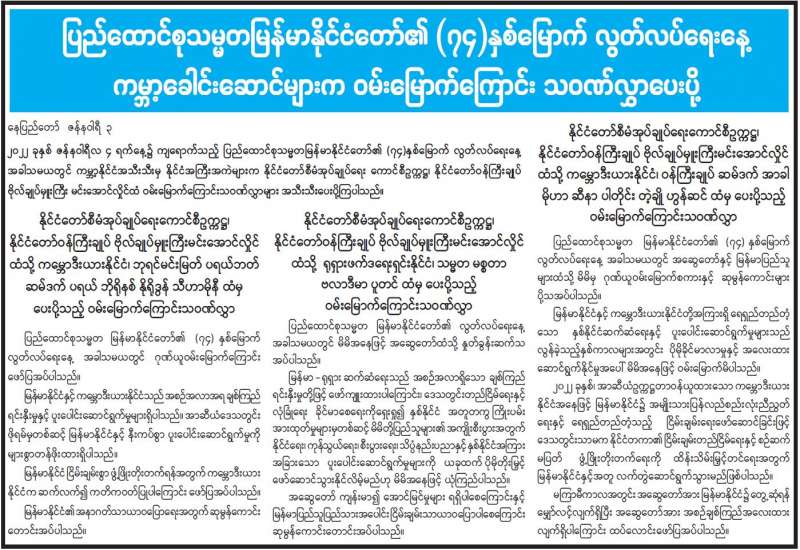 ပို့ဆောင်ရေးနှင့် ဆက်သွယ်ရေး ဝန်ကြီးဌာန မြန်မာ့စာတိုက် လုပ်ငန်းက (၇၄) နှစ်မြောက် လွတ်လပ်ရေးနေ့ အထိမ်းအမှတ် အထူးထုတ် (၂၀၀ ကျပ်တန်) စာပို့ တံဆိပ်ခေါင်းသစ် သုံးမျိုးကို ၂၀၂၂ ခုနှစ် ဇန်နဝါရီ ၄ ရက်၊ မြန်မာသက္ကရာဇ် ၁၃၈၃ ခုနှစ် ပြာသိုလဆန်း ၃ ရက်(အင်္ဂါနေ့) နံနက် ၉ နာရီခွဲမှစတင်၍ နေပြည်တော် ဗဟိုစာတိုက်ကြီး၊ ရန်ကုန် စာတိုက်ကြီး၊ မန္တလေးစာတိုက်ကြီးတို့နှင့် တိုင်းဒေသကြီး/ပြည်နယ်များရှိ စာတိုက်များတွင် ရောင်းချပေးသွားမည် ဖြစ်သည်။ အထူးအစီအစဉ် တစ်ရပ်အနေဖြင့် နေပြည်တော် ဗဟိုစာတိုက်ကြီး၊ ရန်ကုန်စာတိုက်ကြီးနှင့် မန္တလေး စာတိုက်ကြီး တို့တွင် ဇန်နဝါရီ ၄ ရက်တွင် ဝယ်ယူသော စာပို့တံဆိပ်ခေါင်းများပေါ်တွင် နေ့စွဲအမှတ် အသား တံဆိပ်ရိုက်နှိပ်ပေး မည်ဖြစ်ကြောင်း သိရသည်။