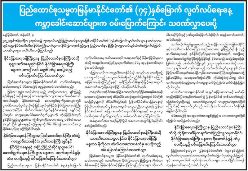 အကြမ်းဖက်အဖွဲ့အစည်းများဖြစ်သည့် CRPH၊ NUG နှင့် PDF အကြမ်းဖက် သမားများသည် တိုင်းပြည်တည်ငြိမ်အေးချမ်းမှုနှင့် တရားဉပဒေစိုးမိုးမှုကို ပျက်ပြားစေရန် ရည်ရွယ်ချက်ဖြင့် အချို့ ဒေသများတွင် လက်နက်ကိုင်တိုက်ခိုက်မှုများ၊ လမ်း၊ တံတားဖောက်ခွဲဖျက်ဆီးမှုများအပြင် အများပြည်သူနေထိုင်လျက်ရှိသော နေအိမ်များကို မီးရှို့ဖျက်ဆီးခြင်းများကို လုပ်ဆောင်လျက် ရှိသည်။