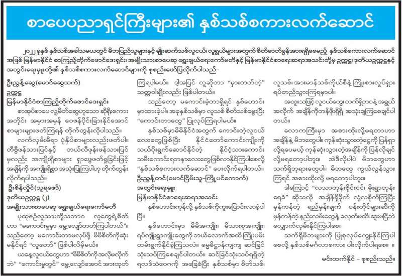 မြန်မာနိုင်ငံ စာကြည့်တိုက်များ ဖောင်ဒေးရှင်း ဗဟိုအလုပ်အမှု ဆောင် အဖွဲ့အစည်းအဝေးနှင့် စာအုပ်လှူဒါန်းပွဲကို ဒီဇင်ဘာ ၂၉ ရက် နံနက်က ရန်ကုန်မြို့ သိမ်ဖြူလမ်း အမှတ် (၂၂၈) ရှိ မြန်မာနိုင်ငံ စာကြည့်တိုက်များ ဖောင်ဒေးရှင်း အစည်းအဝေးခန်းမ၌ ကျင်းပရာ ဥက္ကဋ္ဌ ဦးညွန့်ဆွေနှင့် ဗဟိုအလုပ် အမှုဆောင်အဖွဲ့ဝင်များ၊ စာအုပ် အလှူရှင်တက္ကသိုလ် စိုးယဉ် မိသားစုတို့တက်ရောက်ကြသည်။