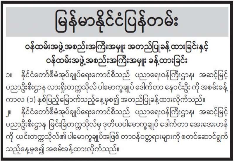 တက္ကသိုလ်များ ဖွင့်လှစ်ရေးလုပ်ငန်းညှိနှိုင်းအစည်းအဝေးကို ယနေ့နံနက် ၉ နာရီခွဲ တွင် နေပြည်တော်ရှိ ပညာရေးဝန်ကြီးဌာန ရုံးအမှတ်(၁၃) အစည်းအဝေးခန်းမ၌ ကျင်းပသည်။