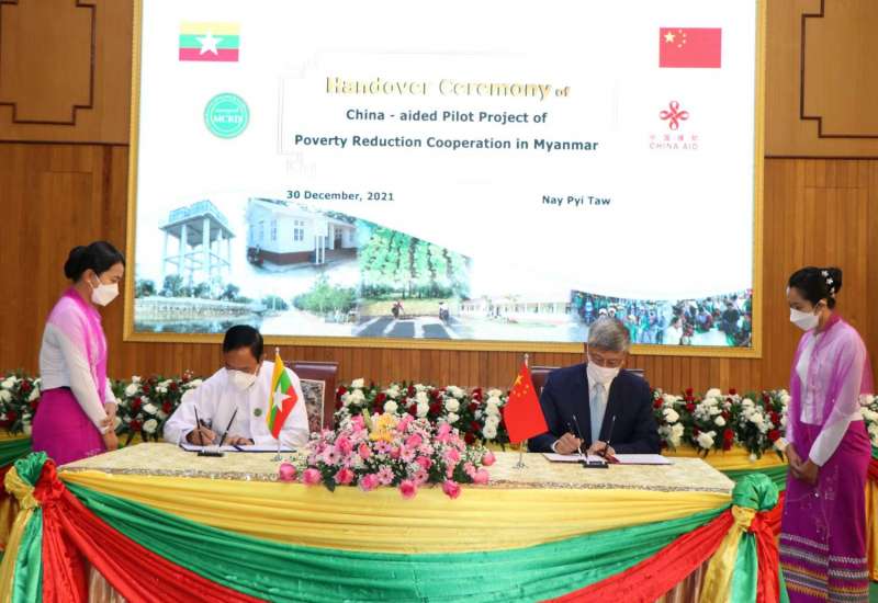 သမဝါယမနှင့်ကျေးလက်ဖွံ့ဖြိုးရေးဝန်ကြီးဌာန၊ ကျေးလက်ဒေသဖွံ့ဖြိုး တိုးတက်ရေးဦးစီးဌာနနှင့် တရုတ်ပြည်သူ့သမ္မတနိုင်ငံ National Rural Revitalization Administration (NRRA)အောက်ရှိ International Poverty Reduction Centre in China(IPRCC )တို့ပူးပေါင်း အကောင်အထည်ဖော်ဆောင်ရွက်ခဲ့သည့် “ China- aided Pilot Project of Poverty Reduction Cooperation in Myanmar” ကျေးရွာအဆင့်ဆင်းရဲမှု လျော့ချရေး စံပြစီမံကိန်း လွှဲပြောင်း ပေးအပ်ပွဲအခမ်းအနားကို ယနေ့နံနက် ၉နာရီခွဲက သမဝါယမနှင့် ကျေးလက်ဖွံ့ဖြိုးရေးဝန်ကြီးဌာန၊ ပြည်ထောင်စုဝန်ကြီးရုံး၊ အစည်းအဝေးခန်းမ၌ ကျင်းပသည်။