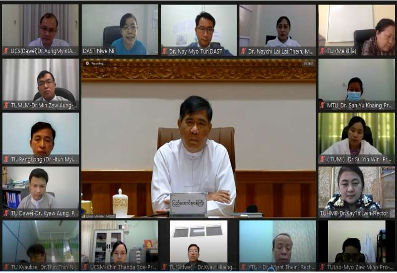 သိပ္ပံနှင့်နည်းပညာဝန်ကြီးဌာန၊ ပြည်ထောင်စုဝန်ကြီး ဒေါက်တာမျိုးသိန်းကျော်သည် ယနေ့ နံနက် ၁၀ နာရီတွင် သိပ္ပံနှင့် နည်းပညာဝန်ကြီးဌာန၌ ဗီဒီယိုကွန်ဖရင့်စနစ်ဖြင့် ကျင်းပသည့် တက္ကသိုလ်များ ပြန်လည်ဖွင့်လှစ်နိုင်ရေး လုပ်ငန်း ညှိနှိုင်းအစည်းအဝေးသို့ တက်ရောက်ခဲ့သည်။