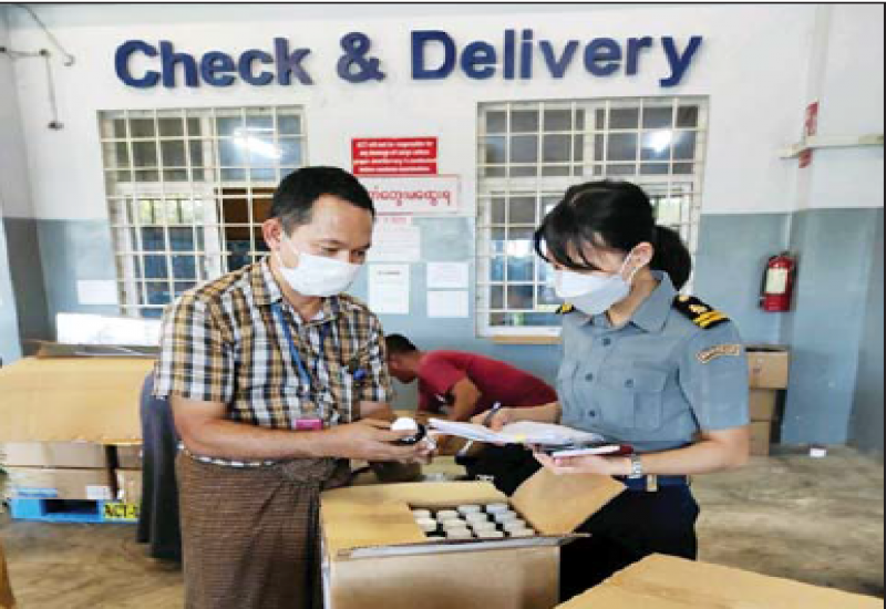 အကောက်ခွန်ဦးစီးဌာနအနေဖြင့် ကိုဗစ်-၁၉ ရောဂါ ကာကွယ်၊ ထိန်းချုပ်၊ ကုသရေးပစ္စည်းများ အား ရေကြောင်း၊ ဆိပ်ကမ်း၊ နယ်စပ်ဂိတ်အသီးသီးမှ နေ့စဉ်လွယ်ကူချောမွေ့စွာ စစ်ဆေးထုတ် ပေးလျက်ရှိသည်။ ဒီဇင်ဘာ ၂၉ ရက်၌ ရန်ကုန်ဆိပ်ကမ်းများမှ Wheel Chair ၁၂၇ ခု၊ Commode Chair ၅၀၀၊ Digital Blood Pressure Monitor ၃၀၀၀၊ Blood Pressure Monitor Bp3UG1-2E ၃၀၀၀၈၊ Auto Matic Blood Pressure Monitor ၃၀၀၀၊ Blood Pressure Monitor BP3NM1-3E ၃၀၀၀၊ PEN Type Digital Thermometer ၃၀၀၀၊ High Low Stretcher ၂၈ ခု၊ Scoop Stretcher ၂၀၊ Female Examining Table ၅ ခု၊