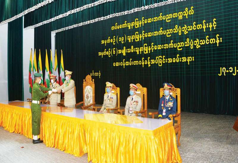 တပ်မတော်သူနာပြုနှင့် ဆေးဘက်ပညာတက္ကသိုလ်၏ သူနာပြုနှင့် ဆေးဘက်ပညာသိပ္ပံဘွဲ့ သင်တန်းအမှတ်စဉ် (၁၉) နှင့် အမျိုးသမီးသူနာပြုနှင့် ဆေးဘက် ပညာသိပ္ပံဘွဲ့ သင်တန်း အမှတ်စဉ် (၆) တို့မှ သင်တန်းဆင်း သင်တန်းသား၊ သင်တန်းသူများအား ဆေးဝန်ထမ်း တာဝန်ခန့်အပ်ခြင်း အခမ်းအနားကို ယနေ့ နံနက်ပိုင်းက တပ်မတော်သူနာပြုနှင့် ဆေးဘက် ပညာတက္ကသိုလ် ဘွဲ့နှင်းသဘင်ခန်းမ၌ ကျင်းပရာ ကာကွယ်ဦးစီးချုပ်ရုံး (ကြည်း) မှ စစ်ရေးချုပ် ဒုတိယ ဗိုလ်ချုပ်ကြီး မျိုးဇော်သိန်း၊ ကာကွယ်ရေးဦးစီးချုပ်ရုံးမှ တပ်မတော်အရာရှိကြီးများ၊ တပ်မတော်သူနာပြုနှင့် ဆေးဘက်ပညာ တက္ကသိုလ် ကျောင်းအုပ်ကြီး ဗိုလ်မှူးချုပ်ဝင်းဗိုလ်နှင့် ကျောင်းဆင်းသင်တန်းသား၊ သင်တန်းသူများ တက်ရောက်ကြသည်။