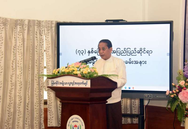 (၇၃)နှစ်မြောက် အပြည်ပြည်ဆိုင်ရာဆိုင်ရာ လူ့အခွင့်အရေးနေ့ အခမ်းအနားကို ယနေ့နံနက် ၁၀ နာရီတွင် ရန်ကုန်တိုင်းဒေသကြီး လှိုင်မြို့နယ် အမှတ်(၂၇)ပြည်လမ်းရှိ မြန်မာနိုင်ငံအမျိုးသား လူ့အခွင့်အရေးကော်မရှင်ရုံး (Conference Room) ၌ ကိုဗစ်-၁၉ ရောဂါ ကာကွယ်၊ ထိန်းချုပ်၊ ကုသရေးဆိုင်ရာ လမ်းညွှန်ချက်များ၊ စည်းမျဉ်းစည်းကမ်းများနှင့်အညီ ကျင်းပသည်။