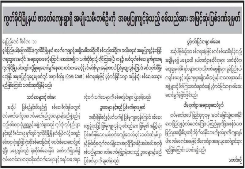 တိုင်းဒေသကြီး၊ ပြည်နယ်များရှိ မြို့နယ်အချို့တွင် အုပ်ချုပ်ရေးပိုင်းဆိုင်ရာ တာဝန်ရှိသူများ၊ နိုင်ငံ့ဝန်ထမ်းများနှင့် အေးချမ်းစွာနေထိုင်လျက်ရှိသော ပြည်သူလူထုအချို့အား လူထုအတွင်း အကြောက်တရား လွှမ်းမိုးစေရန်လည်းကောင်း၊ ဝန်ထမ်းကျင့်ဝတ်နှင့်အညီ ရိုးသားစွာဖြင့် နိုင်ငံတော် အပေါ် သစ္စာစောင့်သိ၍ အလုပ်တာဝန်များ ထမ်းဆောင်လျက်ရှိသည့် နိုင်ငံ့ဝန်ထမ်းများအား လူအုပ်စုဖွဲ့၍ လက်နက်အားကိုးဖြင့် အတင်းအကြပ် CDM ပြုလုပ်စေပြီး CDM ပြုလုပ်ခြင်းမရှိသူ နိုင်ငံ့ဝန်ထမ်းများအားလည်းကောင်း၊ ၎င်းတို့နှင့် အမြင်အယူအဆမတူသူ အေးချမ်းစွာ နေထိုင်လျက် ရှိသော ပြည်သူလူထုများအား “သူလျှို၊ ဒလန်၊ သတင်းပေး”ဟု စွပ်စွဲ၍လည်းကောင်း၊ ငါနှင့်မတူ ငါ့ရန်သူဟူသည့် တစ်ဖက်သက်အစွန်းရောက် ဂိုဏ်းဂဏစွဲအပေါ်အခြေခံကာ အကြမ်းဖက်သူများက တုတ်၊ ဓား၊ သေနတ်၊ လက်လုပ်ဗုံး၊ လက်လုပ်မိုင်းများ အသုံးပြု၍ ရက်စက်စွာ လုပ်ကြံတိုက်ခိုက်၊ သတ်ဖြတ်ခြင်းများ ပြုလုပ်လျက်ရှိသည်ကို တွေ့ရှိရသည်။