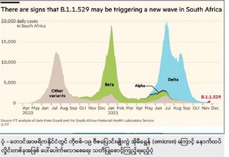 ပြည်သူများအနေဖြင့် ကိုဗစ်-၁၉ ဗီဇပြောင်းမျိုးကွဲ အိုမီခရွန် (omicron) (B.1.1.529) နှင့်ပတ်သက်၍ အထူးသတိပြုရမည့် အချက်အလက်များကို ကျယ်ကျယ်ပြန့်ပြန့် သိရှိစေရေးအတွက် သတင်းအဖွဲ့က ကျန်းမာရေးအသိပညာမြှင့်တင်ရေးဌာနမှ ဒေါက်တာသန်းနိုင်စိုးနှင့် တွေ့ဆုံမေးမြန်းထားသည်များကို တင်ပြလိုက်ပါသည်-