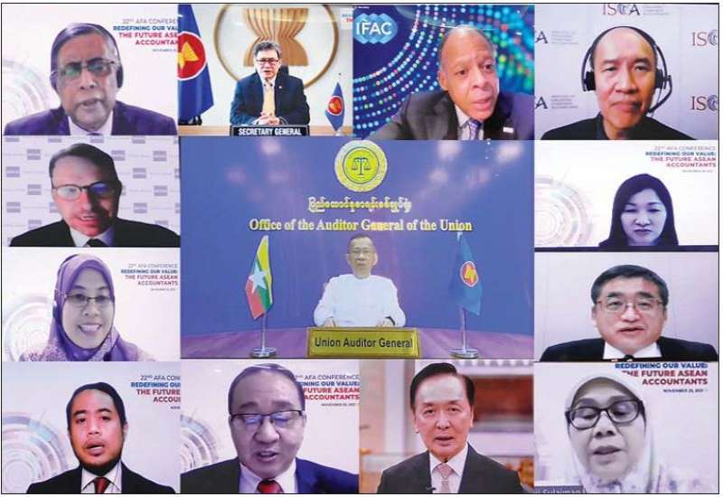 အရှေ့တောင်အာရှနိုင်ငံများဆိုင်ရာ စာရင်းကိုင်များ အဖွဲ့ချုပ် (ASEAN Federation of Accountants-AFA) နှင့် မြန်မာနိုင်ငံလက်မှတ်ရ ပြည်သူ့စာရင်းကိုင်များအသင်း (Myanmar Institute of Certified Public Accountants-MICPA) တို့ ပူးပေါင်းပြီး အင်ဒိုနီးရှားနိုင်ငံ AFA အတွင်းရေးမှူးရုံးက ယနေ့နံနက် ၈ နာရီတွင် ဗီဒီယိုကွန်ဖရင့်စနစ်ဖြင့် ကျင်းပသည့် အရှေ့တောင်အာရှ နိုင်ငံများဆိုင်ရာ စာရင်းကိုင် များအဖွဲ့ချုပ်၏ (၂၂) ကြိမ်မြောက် ညီလာခံသို့ ပြည်ထောင်စုစာရင်းစစ်ချုပ်၊ မြန်မာနိုင်ငံ စာရင်းကောင်စီဥက္ကဋ္ဌ၊ မြန်မာနိုင်ငံလက်မှတ်ရ ပြည်သူ့စာရင်းကိုင်များအသင်း နာယကပါမောက္ခဒေါက်တာ ကံဇော် ပါဝင်တက်ရောက်သည်။