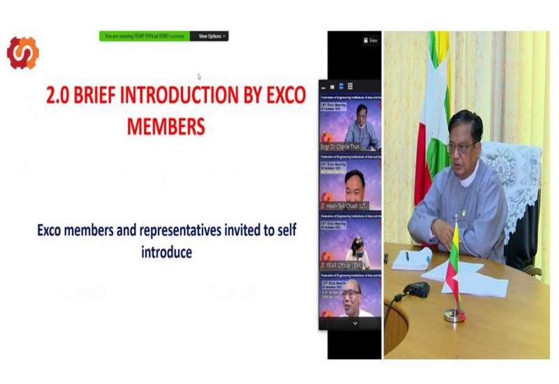 အာရှပစိဖိတ်အင်ဂျင်နီယာအသင်းများ၏ အသင်းချုပ်၊ Federation of Engineering Institutions of Asia and Pacific (FEIAP)၏ (၁၃)ကြိမ်မြောက် အလုပ်အမှုဆောင်အဖွဲ့ အစည်းအဝေးကို ယနေ့မွန်းလွဲပိုင်းက မလေးရှား နိုင်ငံ ကွာလမ်လာပူမြို့၌ Virtual စနစ် ဖြင့်ကျင်းပရာ Federation of Engineering Institutions of Asia and Pacific ၏ ဒုတိယ ဥက္ကဋ္ဌ၊ မြန်မာနိုင်ငံ အင်ဂျင်နီယာကောင်စီ နာယက၊ စက်မှုဝန်ကြီးဌာန ပြည်ထောင်စုဝန်ကြီး ဒေါက်တာချာလီသန်းသည် နေပြည်တော်ရှိ စက်မှုဝန်ကြီးဌာနမှ ပါဝင်တက်ရောက်သည်။