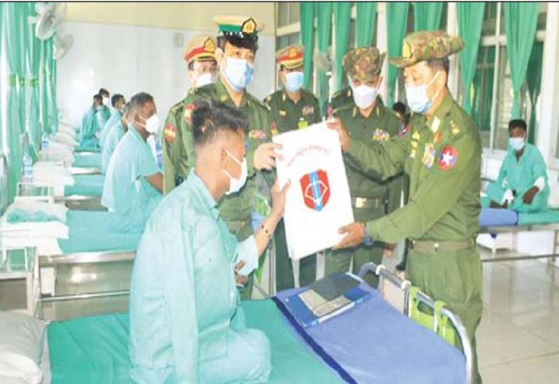 စစ်ကိုင်းတိုင်းဒေသကြီး၊ မုံရွာမြို့ရှိ တပ်မတော်ဆေးရုံ၌ တက်ရောက်ကုသမှုခံယူ လျက်ရှိသော အရာရှိ၊ စစ်သည်၊ မိသားစုဝင်များ၊ စစ်မှုထမ်းဟောင်းအဖွဲ့ဝင်များ၊ မြန်မာ နိုင်ငံရဲတပ်ဖွဲ့ဝင်များနှင့် ဒေသခံပြည်သူများအား ယနေ့တွင် ကာကွယ်ရေးဦးစီးချပ်ရုံး (ကြည်း)မှ ဒုတိယဗိုလ်ချုပ်ကြီး တေဇကျော်၊ အနောက်မြောက်တိုင်းစစ်ဌာနချုပ် တိုင်းမှူး ဗိုလ်မှူးချုပ် ဖြိုးသန့်နှင့် အဖွဲ့ဝင်များက သွားရောက်ကြည့်ရှု၍ တစ်ဦးချင်း၏ ရောဂါဖြစ်ပွားမှုများ၊ ဆေးကုသပေးထားမှုနှင့် ကျန်းမာရေး တိုးတက်မှုအခြေအနေများကို ရင်းရင်းနှီးနှီး မေးမြန်းအားပေးစကားပြောကြားပြီး အလှူငွေများနှင့် စားသောက်ဖွယ်ရာများ ပေးအပ်သည်။