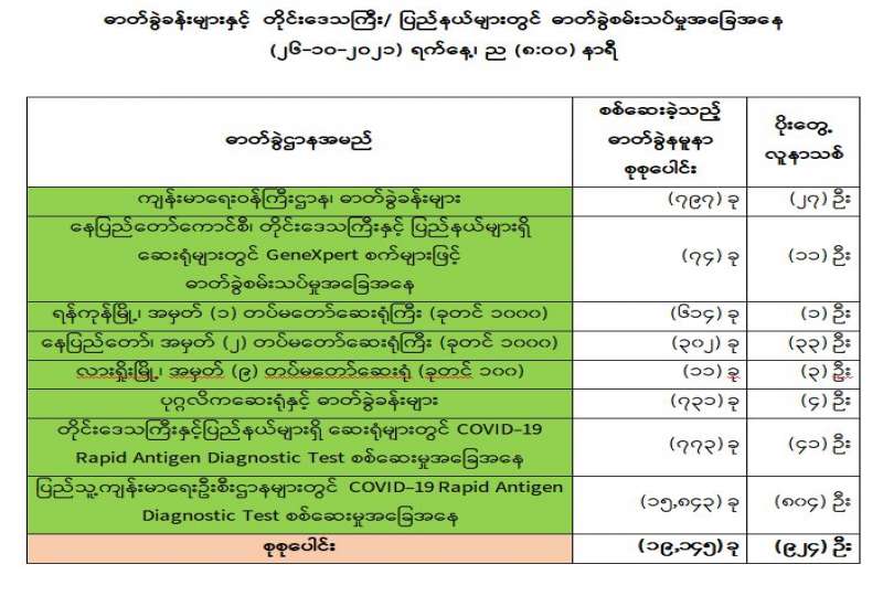 COVID-19 ရောဂါစောင့်ကြပ်ကြည့်ရှုမှုနှင့်ပတ်သက်၍ သတင်းထုတ်ပြန်ခြင်း (၂၆-၁၀-၂၀၂၁) ရက်နေ့၊ ည (၈:၀၀)နာရီ