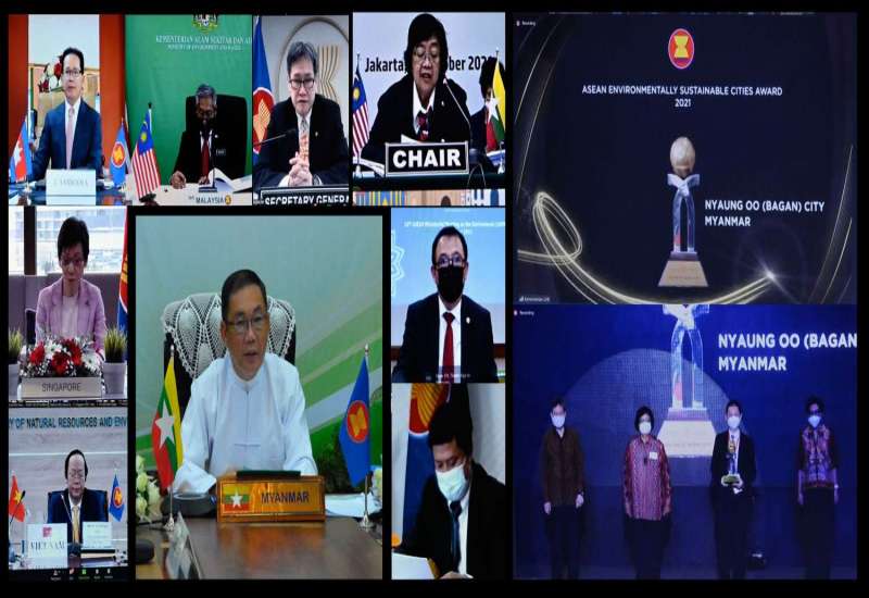 (၁၆) ကြိမ်မြောက် အာဆီယံပတ်ဝန်းကျင်ဆိုင်ရာ ဝန်ကြီးများအဆင့်အစည်းအဝေးနှင့် ဆက်စပ်အစည်းအဝေးများ (16th ASEAN Ministerial Meeting on Environment - 16th AMME and Related Meetings) ကို ယနေ့နံနက် ၈ နာရီခွဲတွင် အင်ဒိုနီးရှားနိုင်ငံက အိမ်ရှင်အဖြစ် ဗွီဒီယိုကွန်ဖရင့် စနစ်ဖြင့်ကျင်းပရာ သယံဇာတနှင့် သဘာဝပတ်ဝန်းကျင် ထိန်းသိမ်းရေးဝန်ကြီးဌာန ပြည်ထောင်စုဝန်ကြီး ဦးခင်မောင်ရီနှင့် တာဝန်ရှိသူများ တက်ရောက်ခဲ့ကြသည်။