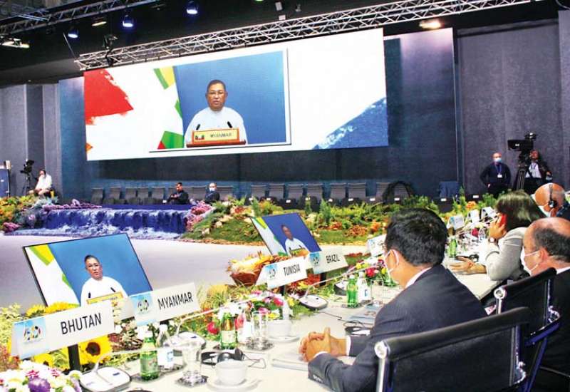 ဘက်မလိုက်လှုပ်ရှားမှုအဖွဲ့ ၏ နှစ်(၆၀)ပြည့် အထိမ်းအမှတ် အဆင့်မြင့်အစည်းအဝေးကို ၂၀၂၁ ခုနှစ်အောက်တိုဘာ ၁၁ ရက်မှ ၁၂ ရက်အထိ ဆားဘီးယားနိုင်ငံ ဘဲလ်ဂရိတ်မြို့၌ ကျင်းပခဲ့ရာ နိုင်ငံခြားရေးဝန်ကြီးဌာန ပြည်ထောင်စုဝန်ကြီး ဦးဝဏ္ဏမောင်လွင်မှ ဗီဒီယိုဖြင့် မိန့်ခွန်းတစ်ရပ် ပါဝင်ပြောကြားသည်။