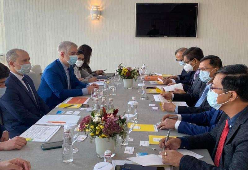 ရုရှားဖက်ဒရေးရှင်းနိုင်ငံ၌ ကျင်းပပြုလုပ်သော Russian Energy Week International Forum (REW 2021)သို့တက်ရောက်ရန် မော်စကိုမြို့၌ ရောက်ရှိနေသည့် လျှပ်စစ်နှင့် စွမ်းအင်ဝန်ကြီးဌာန ပြည်ထောင်စုဝန်ကြီး ဦးအောင်သန်းဦးနှင့်အဖွဲ့သည် အောက်တိုဘာ ၁၂ ရက်တွင် ရုရှားနိုင်ငံရှိ လျှပ်စစ်နှင့်စွမ်းအင်ကဏ္ဍဆိုင်ရာကုမ္ပဏီနှင့် အသင်းအဖွဲ့များမှ တာဝန်ရှိသူများနှင့် နှစ်နိုင်ငံရင်းနှီးမြှုပ်နှံမှုဆိုင်ရာ ကိစ္စရပ်များနှင့် ပတ်သက်၍ တွေ့ဆုံဆွေးနွေးသည်။