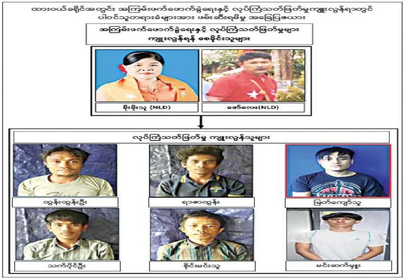 အကြမ်းဖက်အဖွဲ့အစည်းဖြစ်သော NUG ၏ စေခိုင်းချက်အရစက်ရုံ၊ အလုပ်ရုံ များအားမီးရှို့ဖောက်ခွဲဖျက်ဆီးခြင်းနှင့် အပြစ်မဲ့ပြည်သူများအား အဓိကပစ်မှတ်ထား၍ သတ်ဖြတ်ခြင်းတို့အား ဆောင်ရွက်နိုင်မှုမရှိစေရေး ဖော်ထုတ်ဖမ်းဆီးမှုများ ဆောင်ရွက် လျက်ရှိရာ ထားဝယ်မြို့၊
