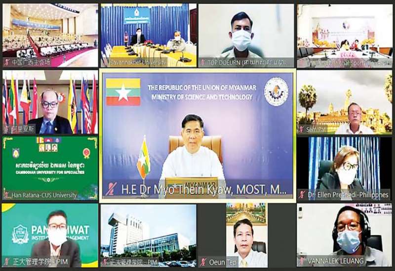 တရုတ်ပြည်သူ့သမ္မတနိုင်ငံ ကွမ်းရှီးကျွမ်းကိုယ်ပိုင်အုပ်ချုပ်ခွင့် ရဒေသ နန်နင်းမြို့၌ ယနေ့တွင် ဗီဒီယို ကွန်ဖရင့်စနစ်ဖြင့် ကျင်းပသည့် ၂၀၂၁ခုနှစ် တရုတ်-အာဆီယံ အသက်မွေးဝမ်းကျောင်း ပညာရေးပြပွဲနှင့် ဖိုရမ်ကို သိပ္ပံနှင့် နည်းပညာဝန်ကြီးဌာန ပြည်ထောင်စုဝန်ကြီး ဒေါက်တာမျိုးသိန်းကျော်တက်ရောက်၍ Video Message ဖြင့်အမှာ စကားပြောကြားသည်။
