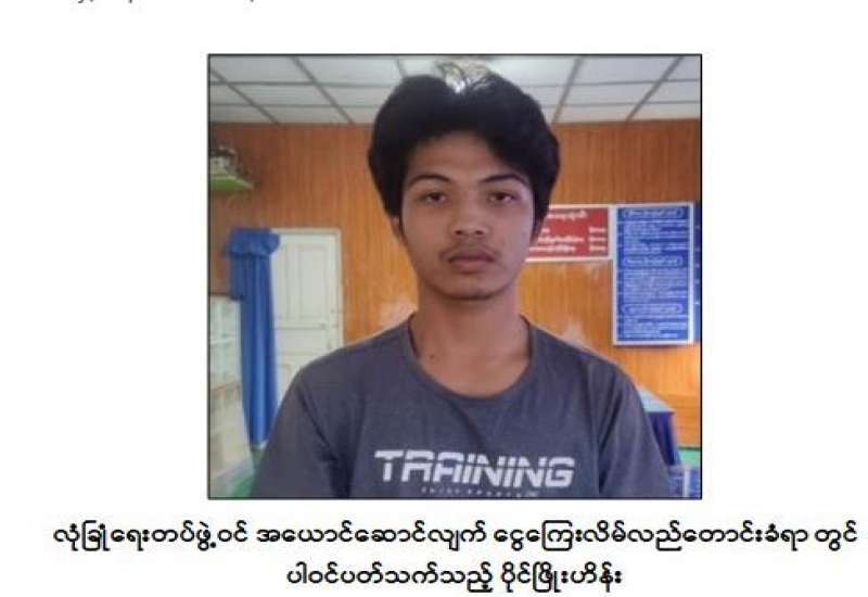 နိုင်ငံတော်တည်ငြိမ်အေးချမ်းမှုကို ပျက်ပြားထိခိုက်စေရန် ရည်ရွယ်၍ အကြမ်းဖက် လုပ်ငန်းများ ဆောင်ရွက်နေသော စစ်ကိုင်းတိုင်းဒေသကြီး၊ မင်းကင်းမြို့နယ်ရှိ အကြမ်းဖက် PDF အဖွဲ့များအား ထောက်ပံ့မှုများပြုလုပ်ပေးနေသူ ပပလှိုင်အား စက်တင်ဘာလ ၅ ရက် ညနေပိုင်းတွင် စစ်ကိုင်းတိုင်းဒေသကြီး၊ မုံရွာမြို့၊ အောင်မင်္ဂလာရပ်ကွက်၊ မင်္ဂလာလမ်းတွင် ဖမ်းဆီးရမိခဲ့သည်။