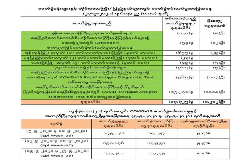 ကျန်းမာရေးဝန်ကြီးဌာနအနေဖြင့် နိုင်ငံအတွင်း ကူးစက်ဖြစ်ပွားနေသော COVID-19 ရောဂါ ကာကွယ်၊ ကုသ၊ ထိန်းချုပ်ရေး လုပ်ငန်းများကို အရှိန်အဟုန်မြှင့်ဆောင်ရွက်လျက်ရှိရာ ရောဂါ ထိန်းချုပ်ရေးလုပ်ငန်းများ အောင်မြင်နိုင်ရေးအတွက် ပြည်သူလူထု အနေဖြင့် ကျန်းမာရေးဝန်ကြီး ဌာနမှ ထုတ်ပြန်ထားသော COVID-19 ရောဂါကာကွယ်ထိန်းချုပ်ရေးဆိုင်ရာ စည်းကမ်းများကို စနစ်တကျ လိုက်နာဆောင်ရွက်ရန်လိုအပ်ပြီး COVID-19 ကာကွယ်ဆေးထိုးနှံမှုခံယူခြင်းအား အထူး ဂရုပြု ပူးပေါင်းဆောင်ရွက် ကြရန်လိုအပ်ပါသည်။