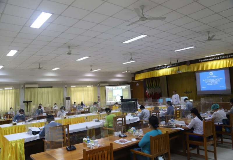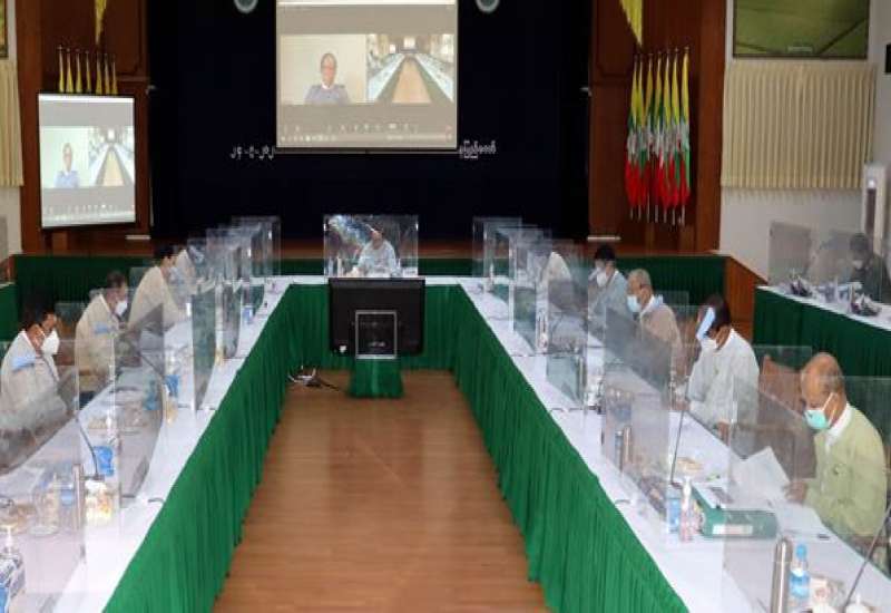 ဟိုတယ်နှင့်ခရီးသွားလာရေးဝန်ကြီးဌာန၊ ပြည်ထောင်စုဝန်ကြီး ဒေါက်တာဌေးအောင်သည် ကမ္ဘာ့ခရီးသွားလုပ်ငန်းနေ့ (၂၀၂၁) အထိမ်းအမှတ်အခမ်းအနား အောင်မြင်စွာကျင်းပနိုင်ရေး အပြီးသတ် စီစဉ်ဆောင်ရွက်ထားရှိမှုများနှင့်စပ်လျဉ်း၍ လုပ်ငန်းညှိနှိုင်း အစည်းအဝေးကို ယနေ့ မွန်းလွဲပိုင်းက ဗီဒီယိုကွန်ဖရင့်စနစ်ဖြင့် ဝန်ကြီးဌာန နီလာအစည်းအဝေးခန်းမ၌ ကျန်းမာရေး ဝန်ကြီးဌာနမှ ထုတ်ပြန်ထားရှိသည့် ကိုဗစ်-၁၉ ရောဂါကာကွယ်၊ ထိန်းချုပ်ရေးဆိုင်ရာ ညွှန်ကြားချက်များနှင့်အညီ ကျင်းပသည်။
