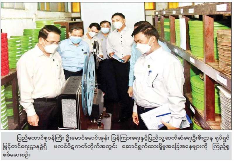 ပြန်ကြားရေးဝန်ကြီးဌာန ပြည်ထောင်စုဝန်ကြီး ဦးမောင်မောင်အုန်းသည် ယနေ့ နံနက်ပိုင်းတွင် ရန်ကုန်မြို့ ဗဟန်းမြို့နယ်ရှိ ပြန်ကြားရေးနှင့် ပြည်သူ့ဆက်ဆံရေးဦးစီးဌာန ဖလင်ပိဋကတ်တိုက်နှင့် ရုပ်ရှင်စတူဒီယိုတို့သို့ ရောက်ရှိပြီး လုပ်ငန်းဆောင်ရွက်နေမှု အခြေအနေများကို ကြည့်ရှုစစ်ဆေးသည်။